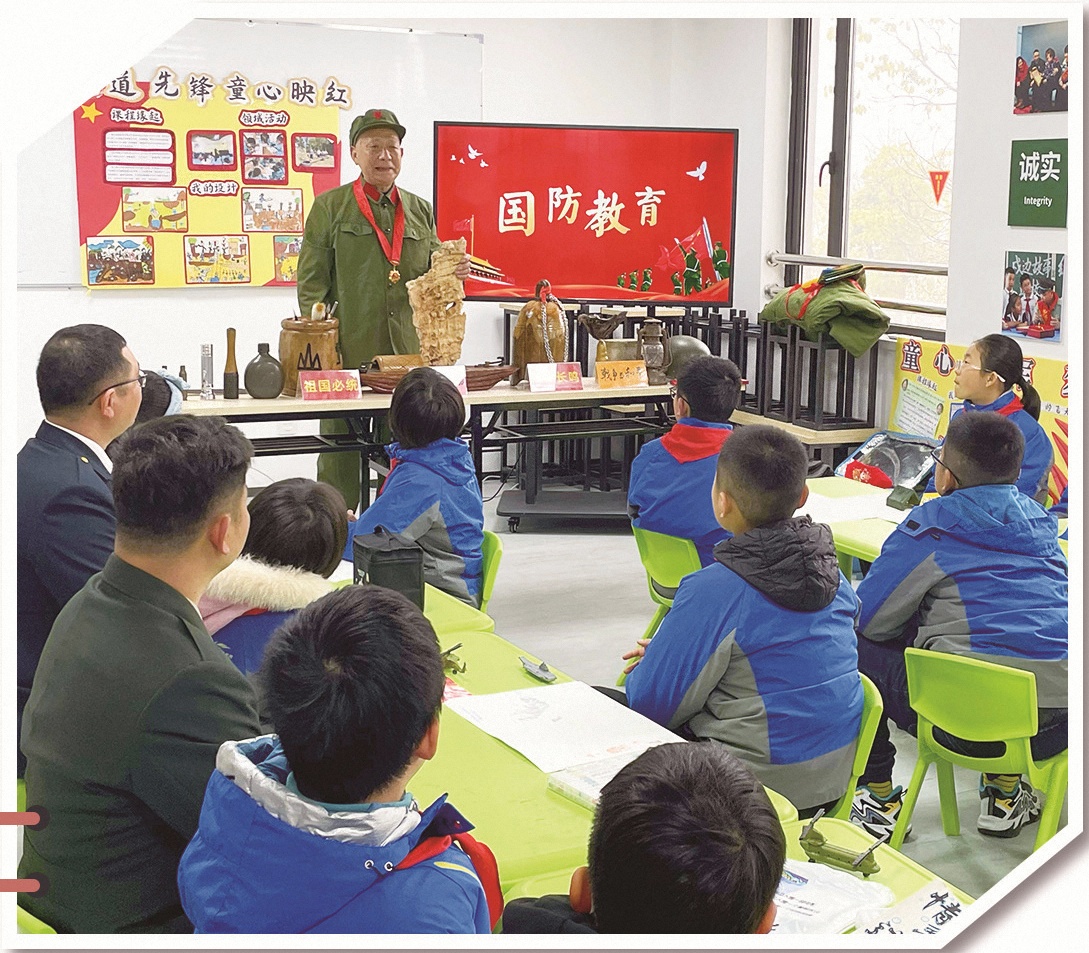 授课结束后,师生们与老兵一起给边防官兵写信、制作贺卡。“少年无钢枪,却有笔作剑、志如磐。以青春筑心防,聚少年之力,便是坚不可摧的国防长城……”这是高琦小学五年级学生杨奕在信中写下的一段文字。
