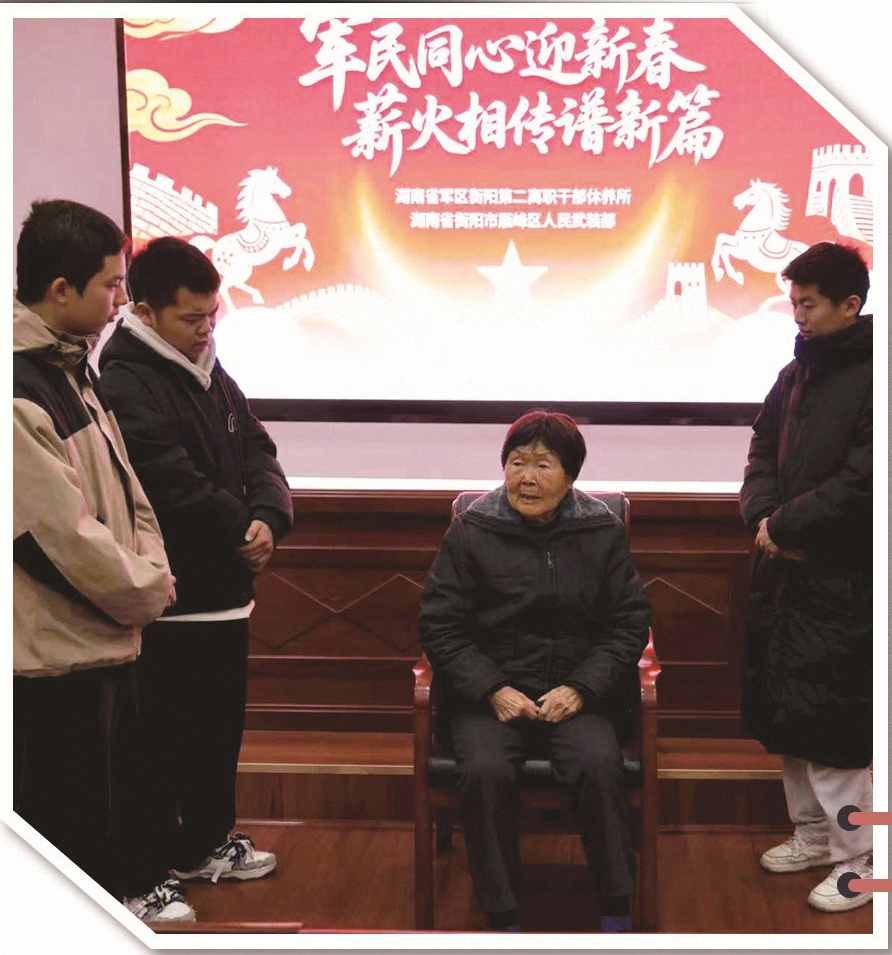2月初,临近春节,年味愈浓,湖南省军区衡阳第二离职干部休养所的多功能厅内暖意融融。衡阳警备区组织官兵、民兵和10名应征青年代表,为15位老兵带来一场慰问演出。