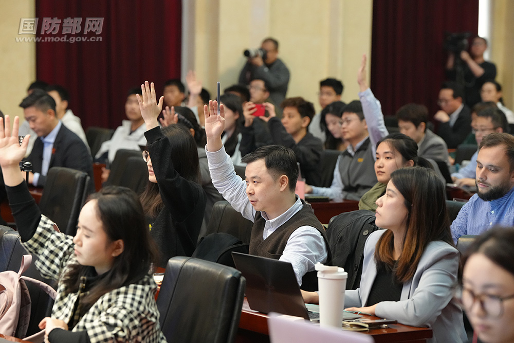 3月26日下午,国防部举行例行记者会,国防部新闻局副局长、国防部新闻发言人蒋斌大校答记者问。孙悦 摄